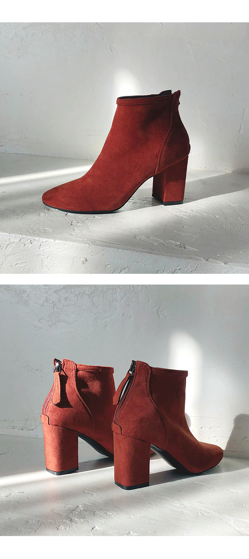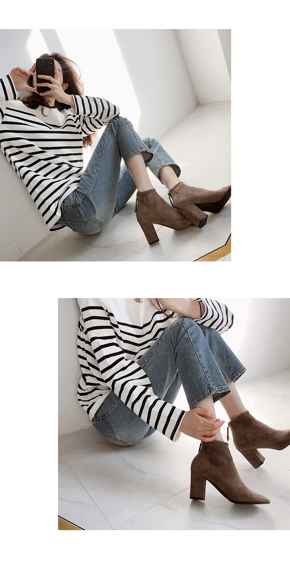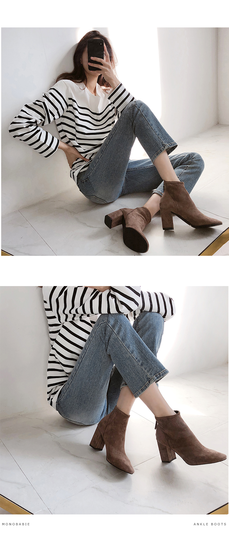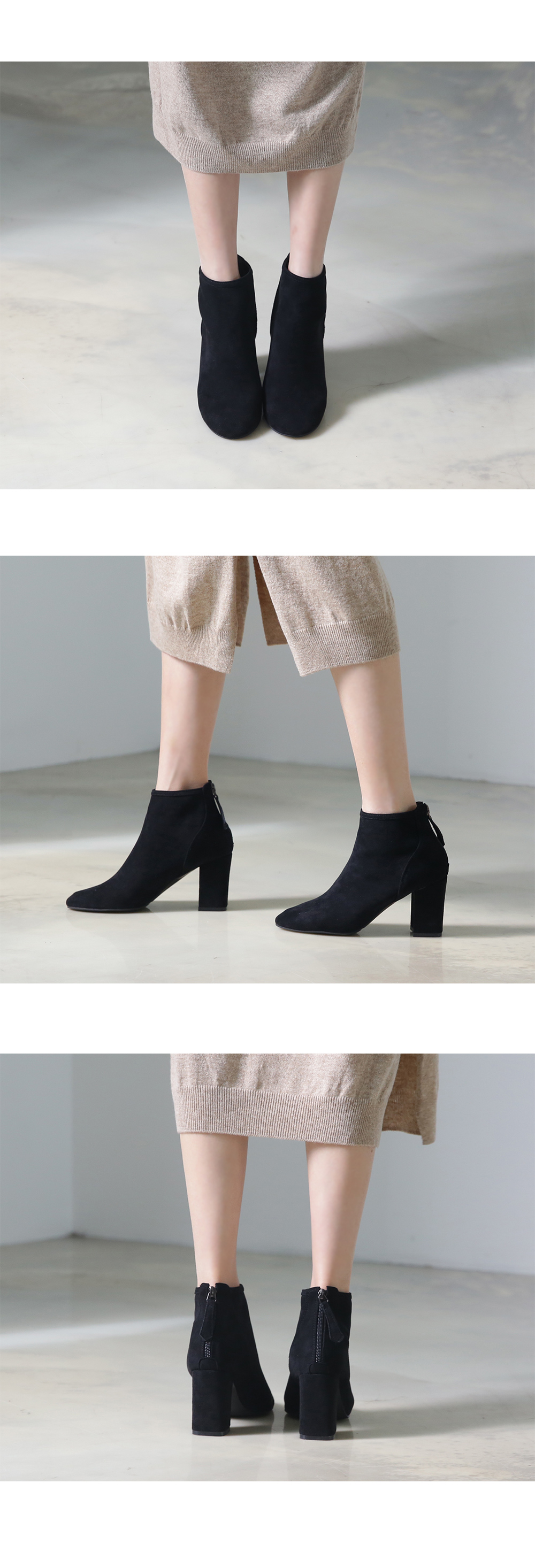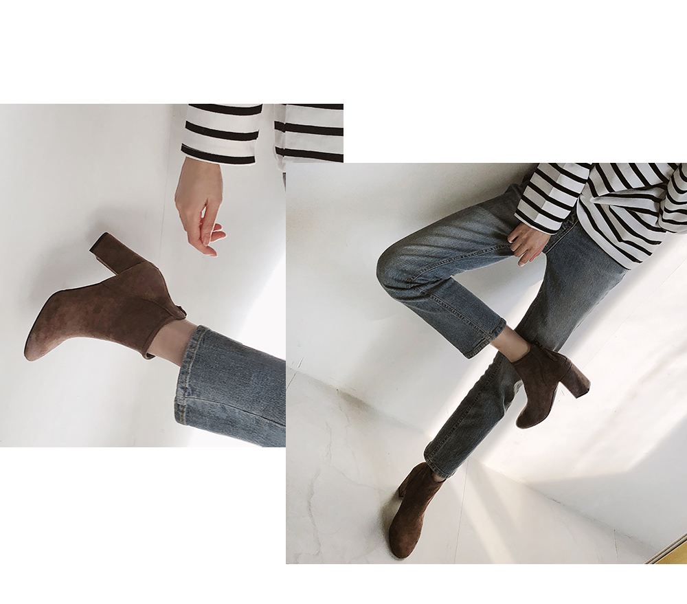 군더더기없는 스웨이드 앵클부츠입니다.