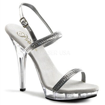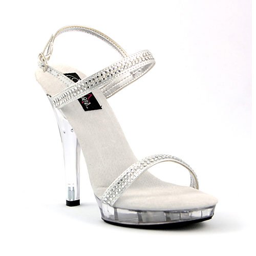 Studio : Fabulicious Publisher : Fabulicious Binding : Apparel Product Description Heel Height: Approx. 5' Tall. Double silver strap sandals, one around the toes and one on the instep, decorated with mirror-like squares which reflect the light for stylish sparkles. A thin silver ankle strap is attached on the instep strap for added stability. 0