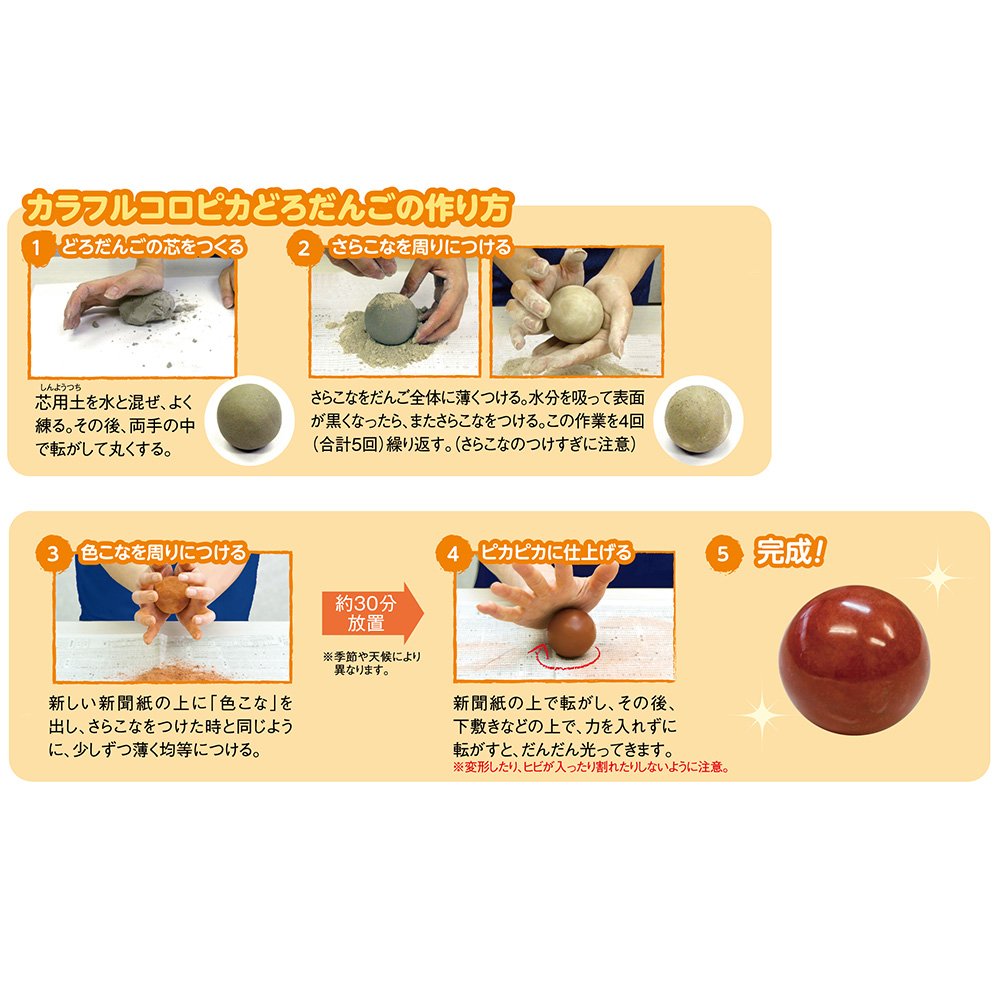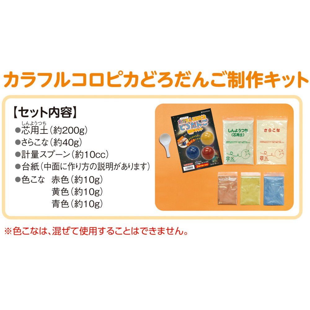 A new type that makes red, yellow, blue colorful eagles can be made in "Colloqua Doll Donko Production Kit" which makes natural shiny shiny dango as a material with natural sand and clay as a material.