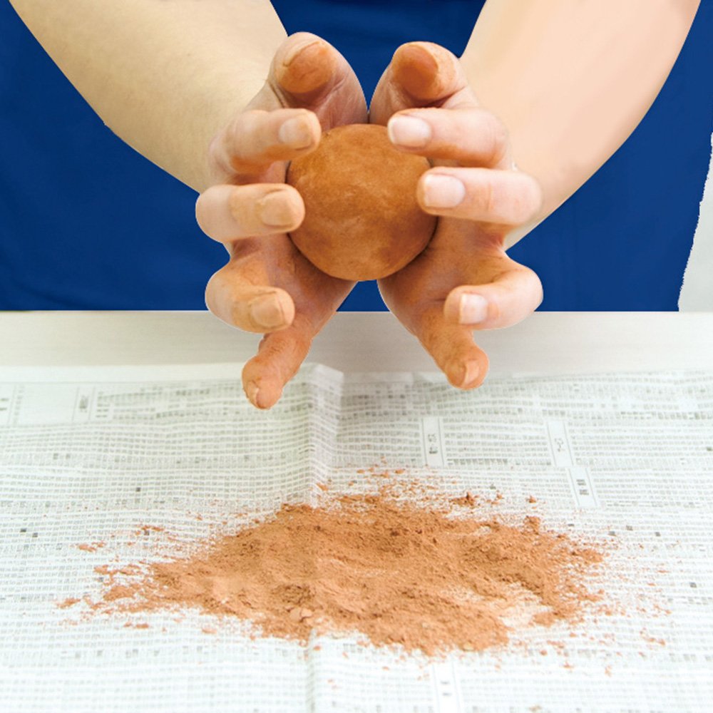 The material uses natural sand and clay.