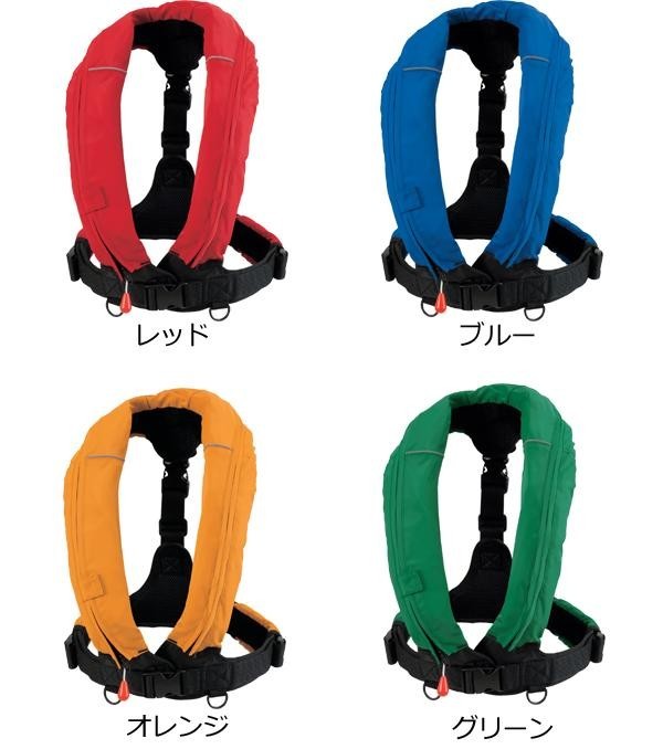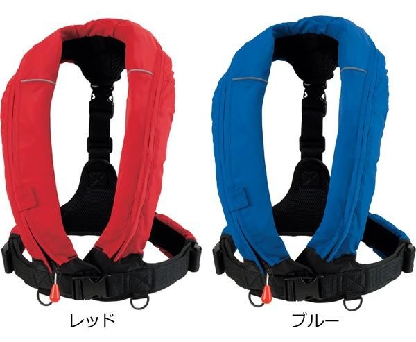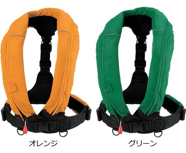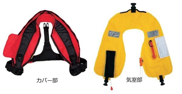 | 水を検知し自動膨張する補助機能付きタイプのライフジャケットです。手動も可。船舶検査対応OKです。 |