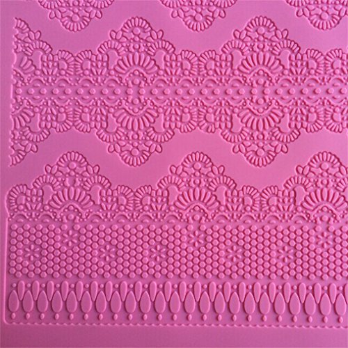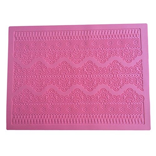 FLY Cake Mold Big Flower Pattern Silicone Fondant Lace Embossed Mold,Pink
