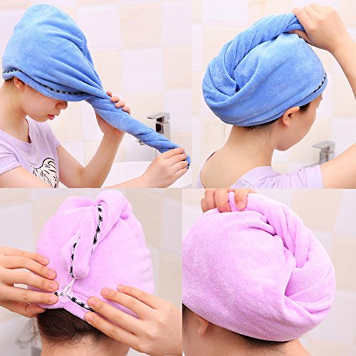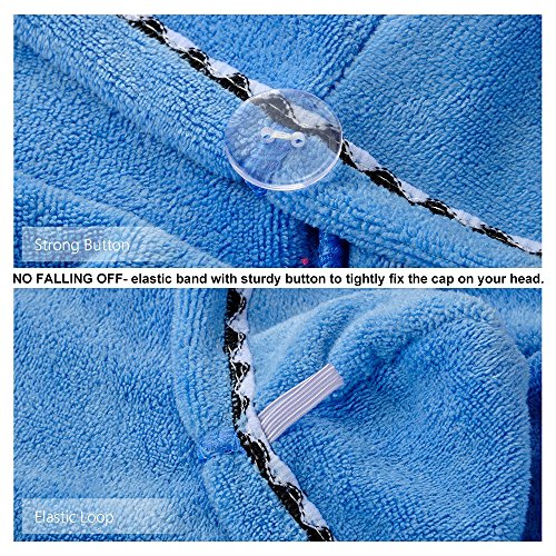 - EASY TO USE: To cover your hair with the towel, twist it and then button it up, strong button and elastic band make sure no falling of your hair when you bath or do make up