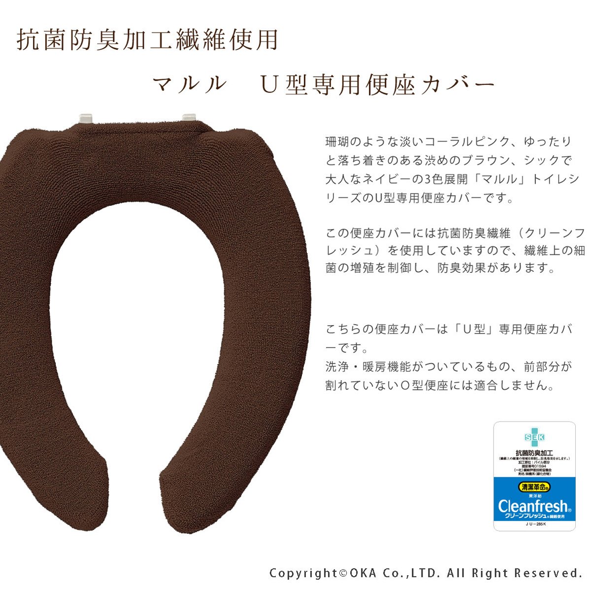 Oka toilet seat cover Maruru U type antibacterial Brown