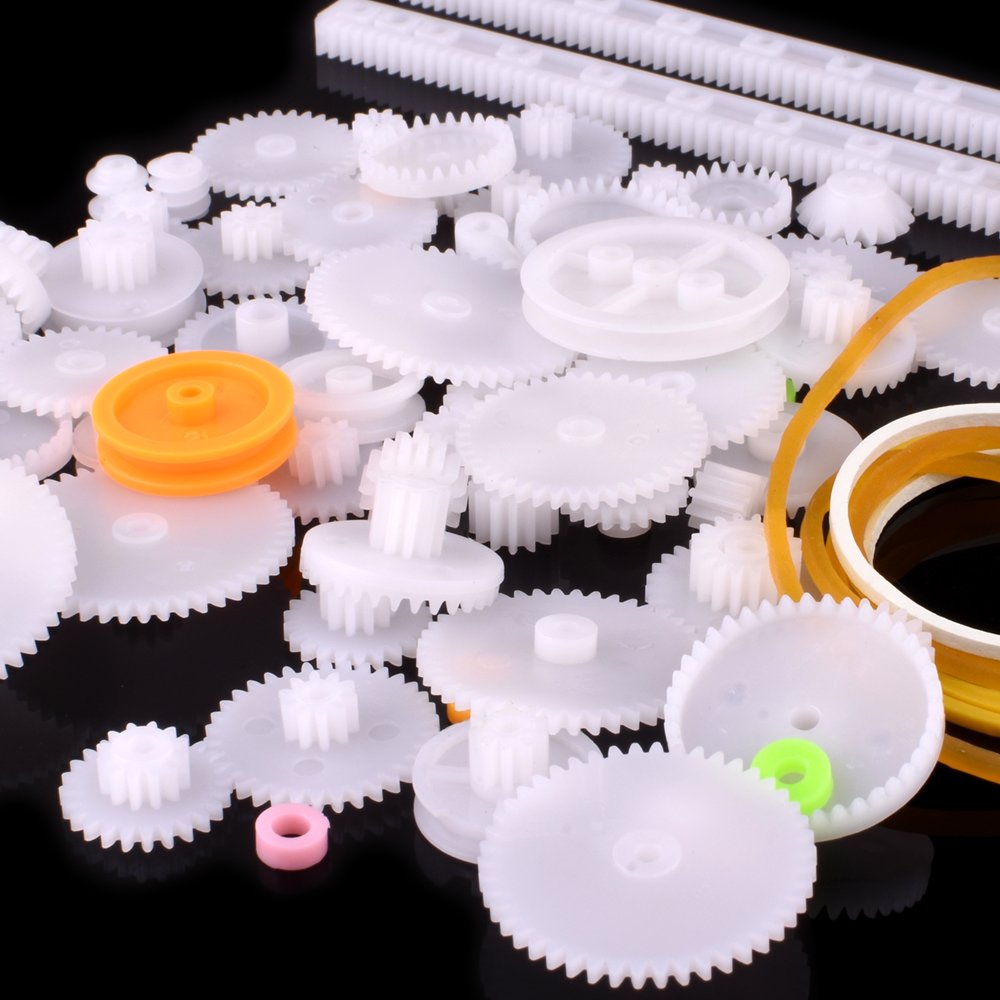 Material: Plastic type: spindle gear, crown gear, single gear, double gear, worm gear, bevel gear, belt pulley, connecting rack, axle sleeve, connecting rack, tea collar.