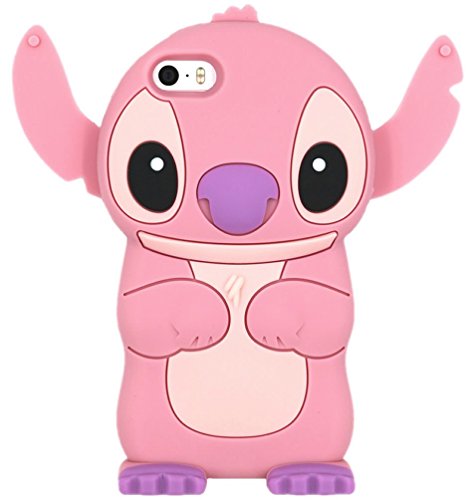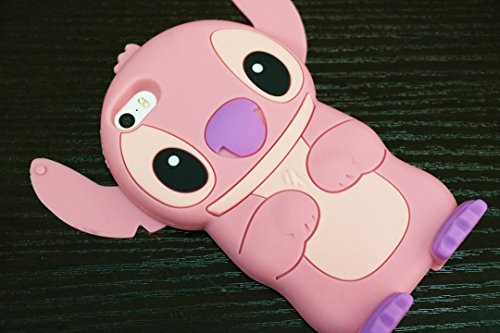 Iphone SE Case, Iphone 5 5s Case, Cute 3D Cartoon Lovely Lilo Stitch Movable Ear Flip Soft Gel Rubber Silicone Protection Skin Case Cover for Iphone 5s / 5 / SE ( Pink Stitch )