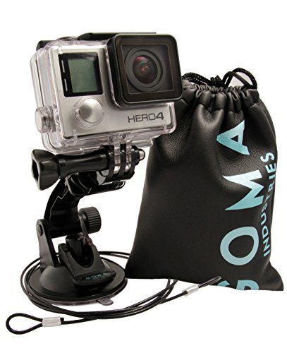 GOMA Industries Suction Cup Car Mount for GoPro Hero5// Session Hero4 Hero3 All Gopro Cameras and camcorders SJcam SJ4000, SJ5000, Garmin Virbx, xiaomi Yi Bundled with Safety Tether and Protective Bag