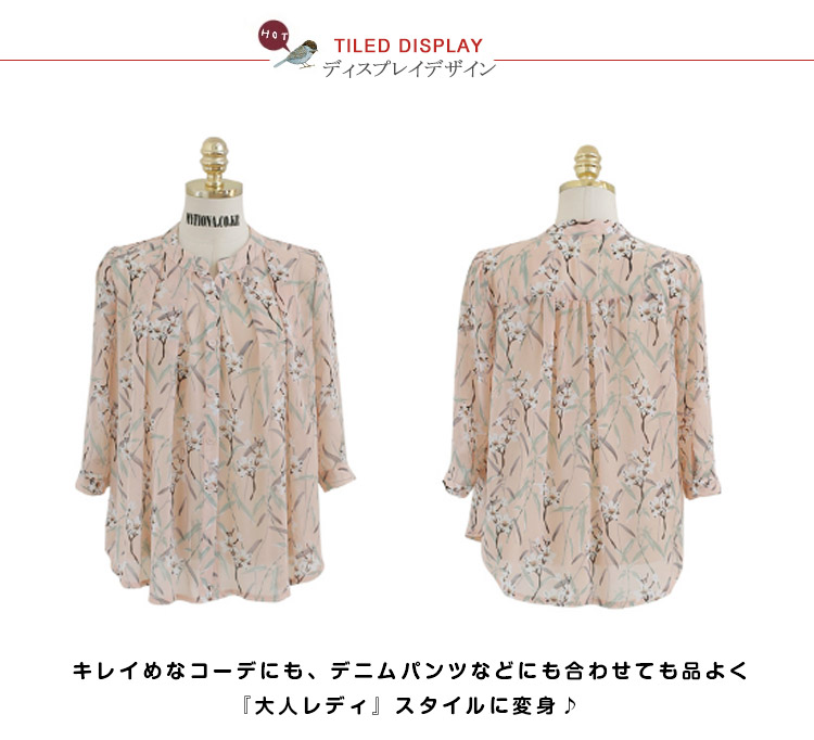 | 大人っぽい花柄のキチンと感のあるブラウス!パッと目を引くフラワープリントなので、シンプルなボトムに合わせるだけで華やかなコーデに仕上がります。 デザインデニムを合わせたヴィンテージルックにも、スカートを合わせた上品スタイルにもマッチ。 | |