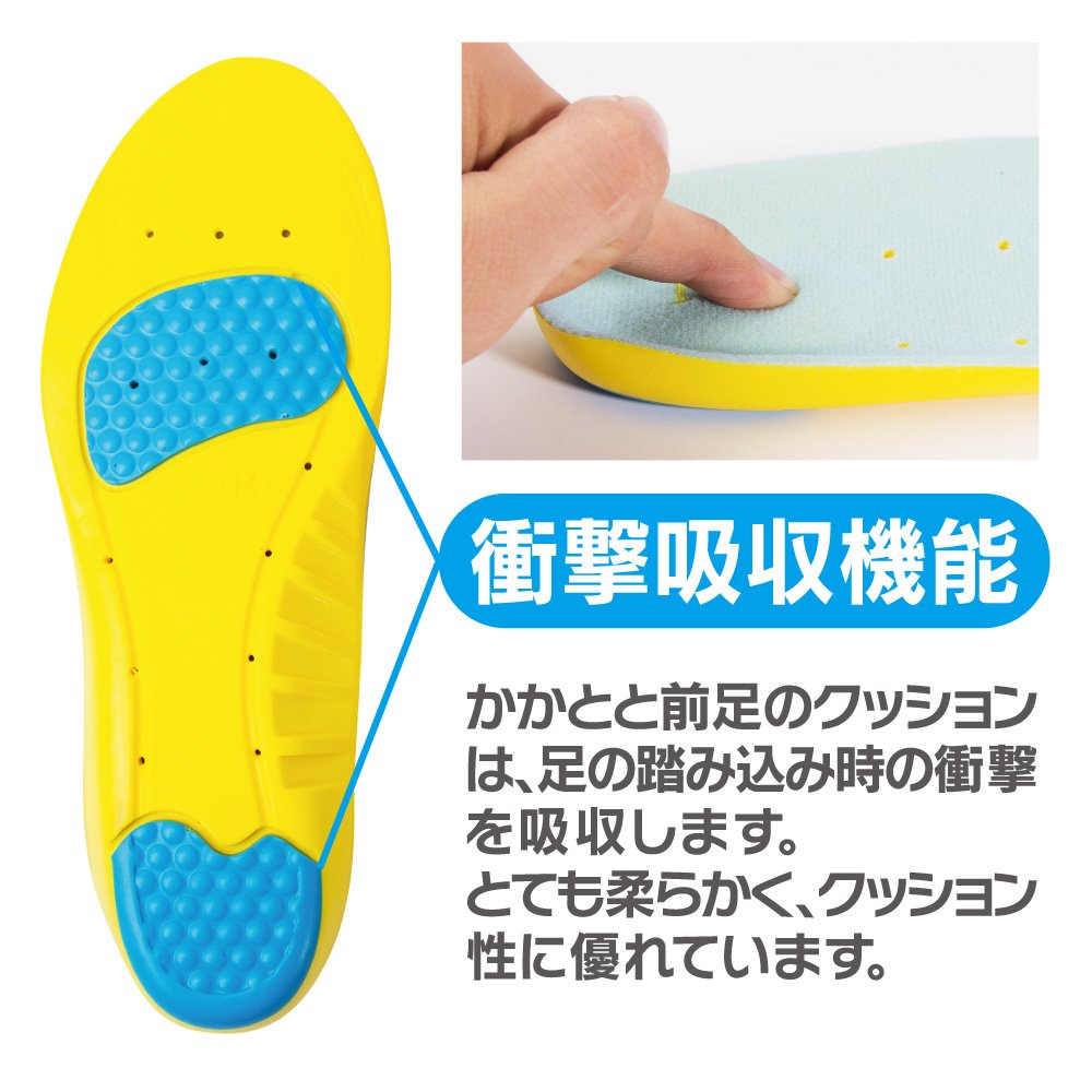 We use the gel of the heel and forefoot and absorb the shock when stepping on the foot.
