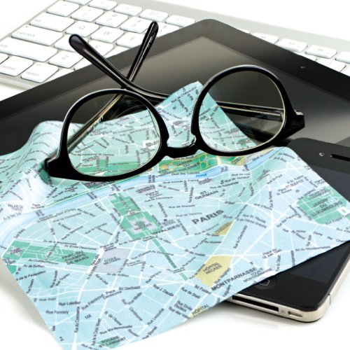 -. Feature : Soft microfiber cloth / safely clean glasses, sunglasses, smartphones and other portable devices / The design is a map of Paris / Cloth measures 6" x 7" and comes in a plastic pouch / Comes in a plastic, reusable pouch