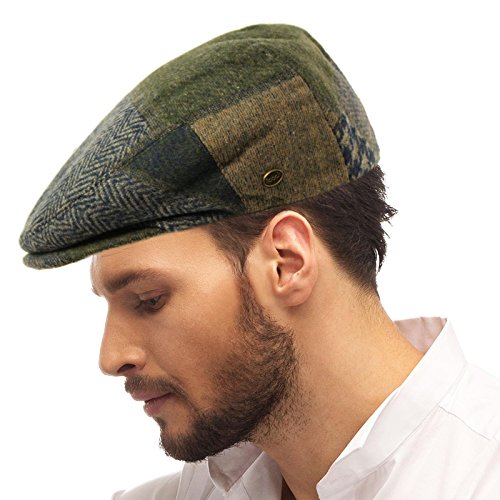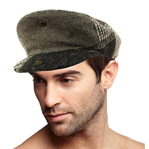 Classic Men's Winter Fall 100% Ultra Soft Wool Patchwork Solids Herringbone Houndstooth Cut and Sew Flat Golf Ivy Driver Driving Cabby Cap Hat Snap Visor Bill Fitted Back Great for Men and Teens. Classic visor driver's cabbie ivy flat cap, iconic look that never goes out of style. Great quality. Interior sweatband, snap on off visor no interior lining for comfort. Structured body, stiff brim, clean fitted back. Perfect for cool weather and to keep harmful sun and UV rays out of your face. Great for everyday wear, will this be your next favorite hat? Will compliment any outfit. Mix and match with your existing wardrobe. Great for vacations and outdoor activities. A must have in every wardrobe. This hat is also known as a cabbie cap, longshoreman's cap, cloth cap, scally cap, Wigens cap, ivy cap, golf cap, jeff cap, duffer cap, duckbill cap, driving cap, bicycle cap, Irish cap, Newsboy cap, Crook cap, Joao's hat, Sixpence, or a Paddy cap and in regional varieties: in Scotland as a bunnet, in Wales as a Dai cap, and in New Zealand, as a cheese-cutter. Cloths used to make the cap include wool, tweed (most common), and cotton. Less common materials may include leather, linen or corduroy. The inside of the cap is commonly lined for comfort 0 |