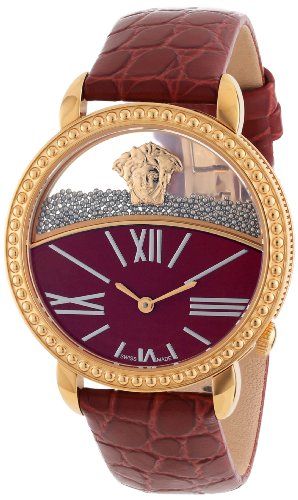 VERSACE WOMEN'S 93Q80BD800 S800 KRIOS ROSE GOLD ION-PLATED STAINLESS STEEL MICRO SPHERES RED LEATHER WATCH