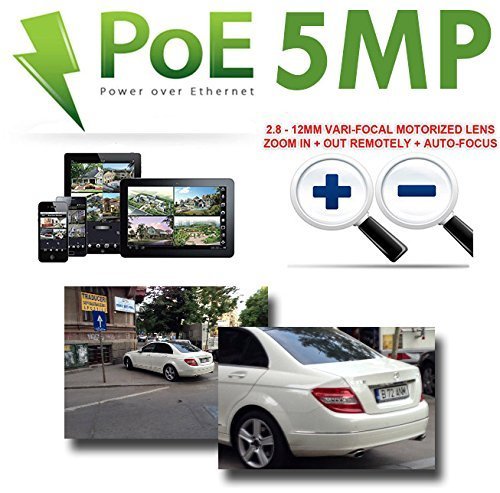 Built in 2.8~12mm 4X Optical Motorized Zoom Varifocal Megapixel HD Auto-focus lens which allow you to adjust the angle of View from 22-115° and Remotely Zoom In & Out through NVR, Computer, Phone or Tablet