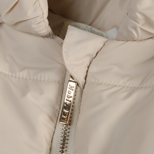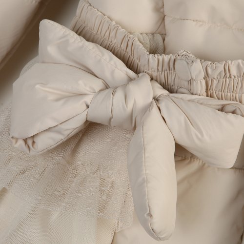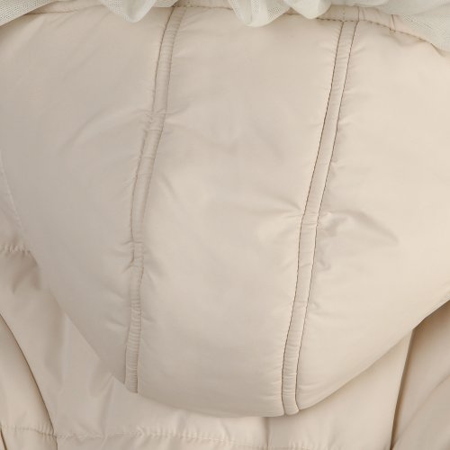 Padding jacket with ruffled mesh covered bottom