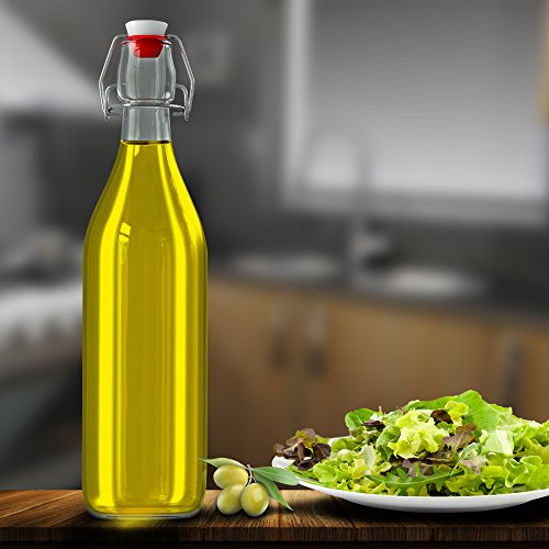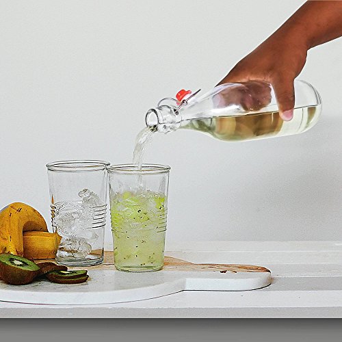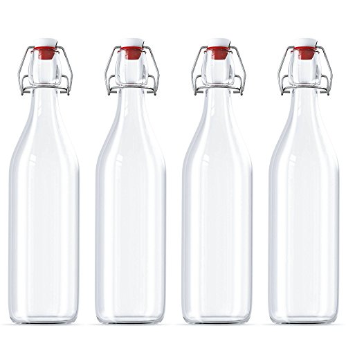 Swing Top Bottles Set of 4 Glass Kombucha Fruit Beverage Beer Liquor 32 Ounces Each Clear Flask Airtight Seal Stopper with Bonus Funnel Included