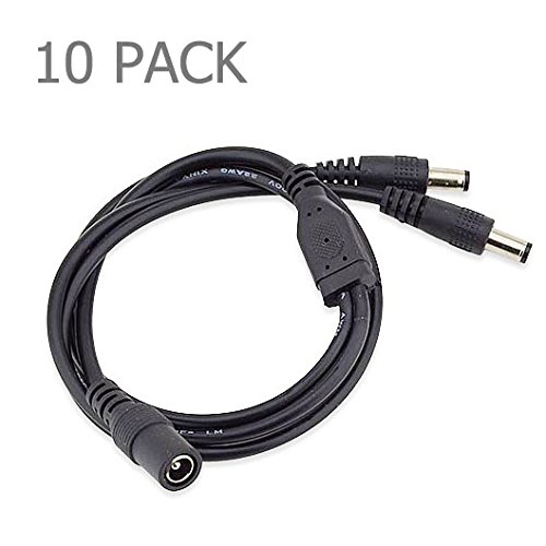 E-outstanding 10 Pack 1 Female to 2 male 5.1mm X 2.1mm CCTV DC Power Supply Splitter Cable