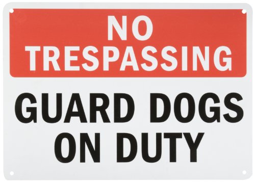 SmartSign Plastic Sign, Legend "No Trespassing Guard Dogs on Duty", 10" high x 14" wide, Black/Red on White