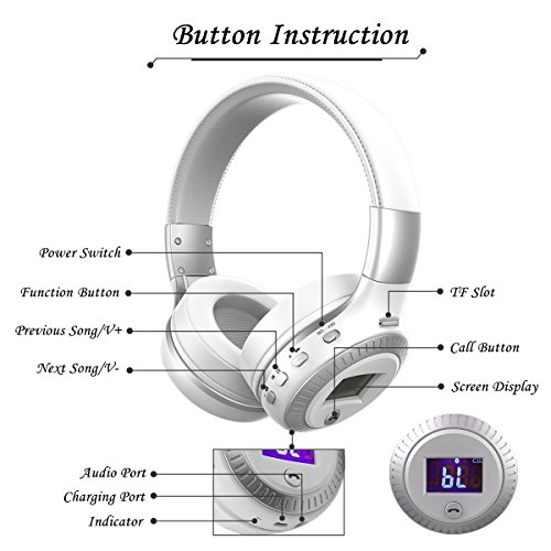 [Beide Wireless & Wired]: Es bietet bis zu 8-Stunden Musik Zeit / 6-Stunden-Gesprach Zeit in einer einzigen Ladung; Wired-Modus: Sie konnen es auch als kabelgebundenen Kopfhorer mit dem mitgelieferten Audiokabel verwenden, damit der Kopfhorer niemals ausgeschaltet wird.