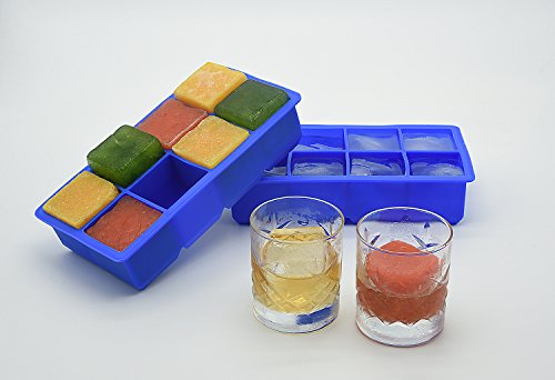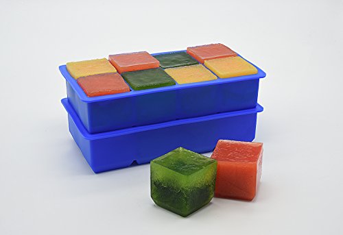 hyhjh Silicone Ice Cube Tray, Set of 2, 8 Grids,No Odor or Aftertaste- 2 Inch Cubes Ice! (blue)