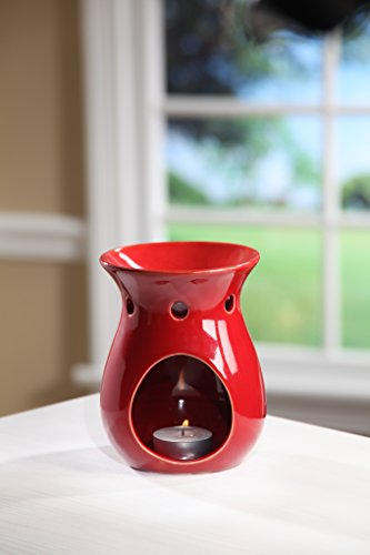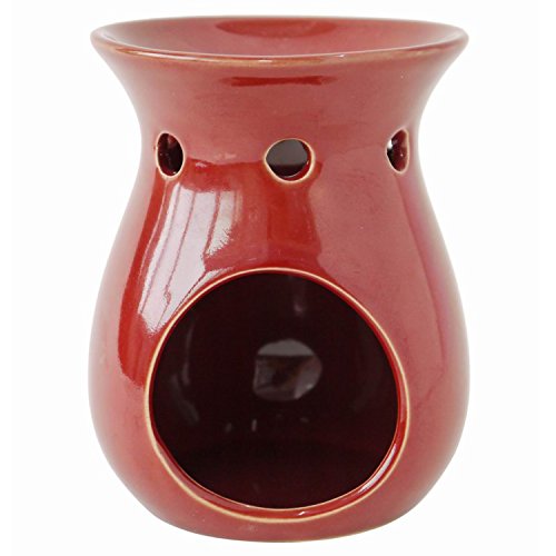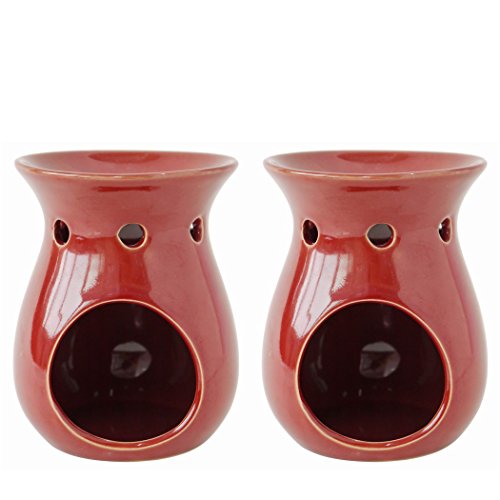 Hosley's Set of 2 Red Ceramic Oil Warmer - 5.3" High. Ideal for Spa and Aromatherapy. Use with Hosley Brand Essential Oils and Fragrance Oils. P9