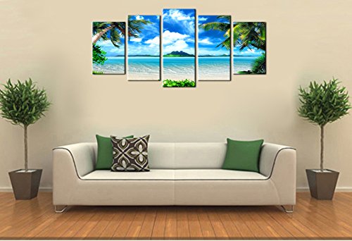 5 piece gallery wrapped high definition giclee modern ocean summer canvas wall art prints is ready to hang for home decorations wall decor. Each panel has a black hook already mounted on the wooden bar ready to hang out of box.