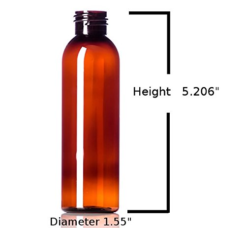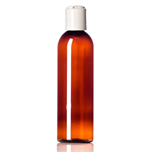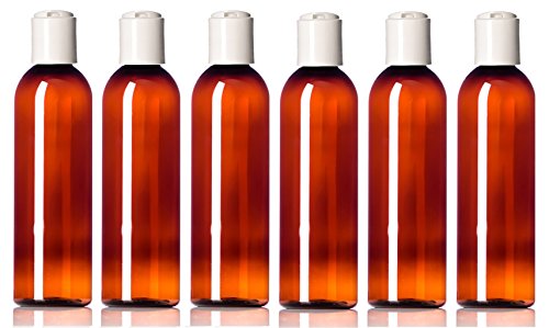 Newday Bottles, Plastic Bottle 4 Oz Amber PET Cosmo Bullet Round BPA-Free with Hand Press Smooth White Disc Cap Lid, Pack of 6