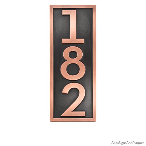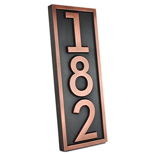 -. Title : Bold Modern Font Address Vertical House or Business Number Plaque - 7x18 - Copper Coated Sign - 3 Numbers