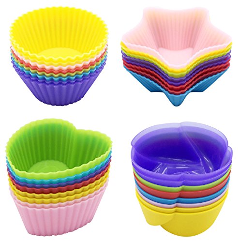 KIDAC 32 Piece Baking Cups, Cupcake Liners Non Stick Reusable Food Safe Silicone Muffin Cup 4 Shapes Set, Assorted Colors