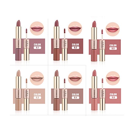 -. Feature : Innovative 2 in one lipstick- One end matte nude lipstick + one end matte liquid lipstick- satisfy your need in a little cute stick / The Professional 6 pc set contains 6 different nude colors from pale nude to brown nude / 2 sets different 6 pc matte lipsticks for you to choose from, pick your shades / Shipping: it usually takes 5-10 business days sometimes might take even less / This lipstick set will not dry our lips and 100% healthy ingredients