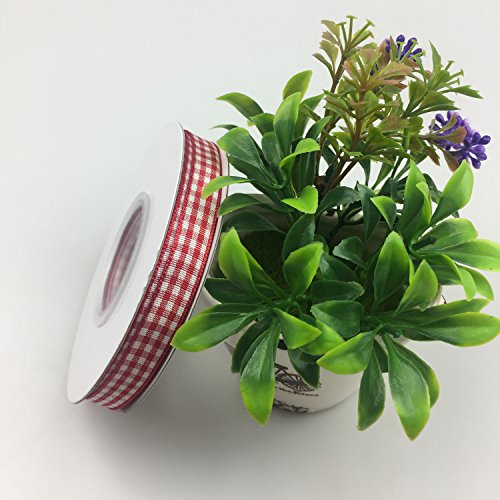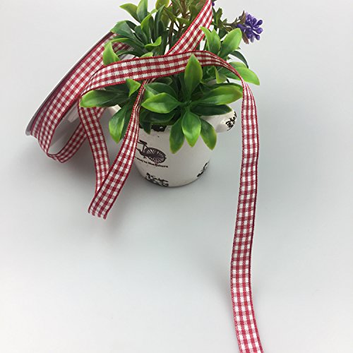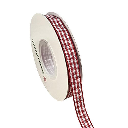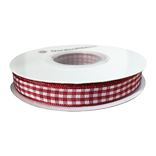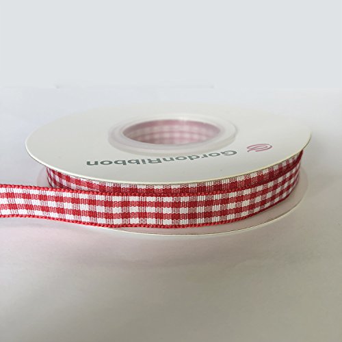 Red Gingham Woven Edge Ribbon, Checkered Craft, 25 Yards Long per Spool, 3/8 Inch Wide
