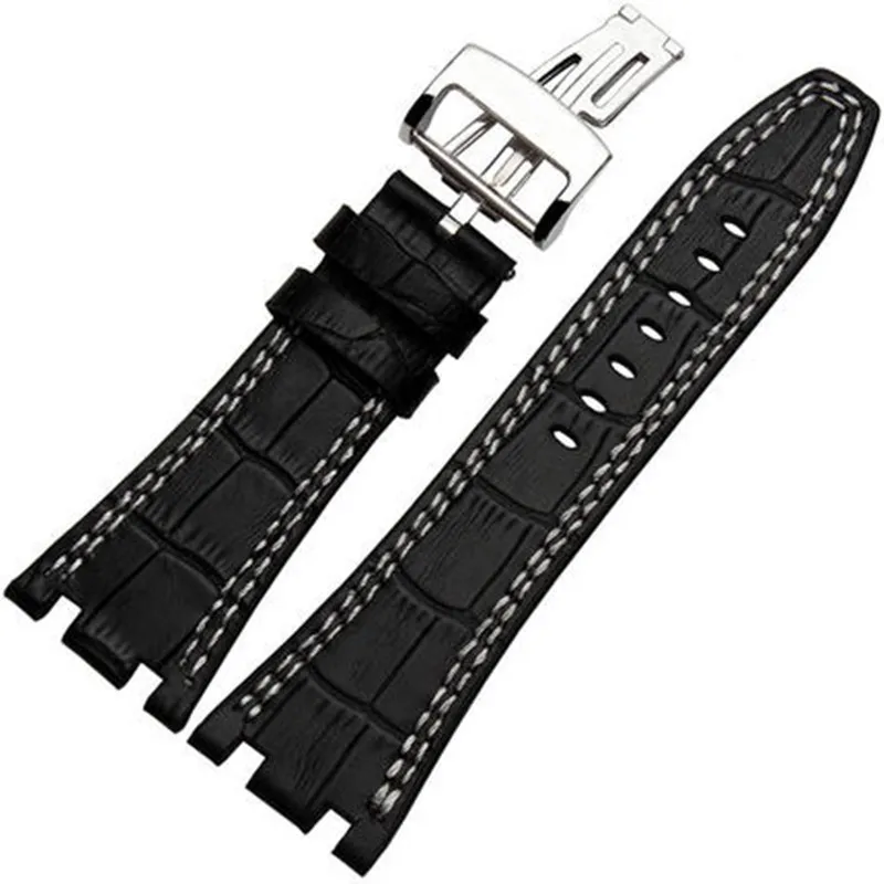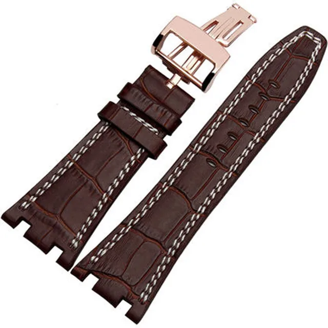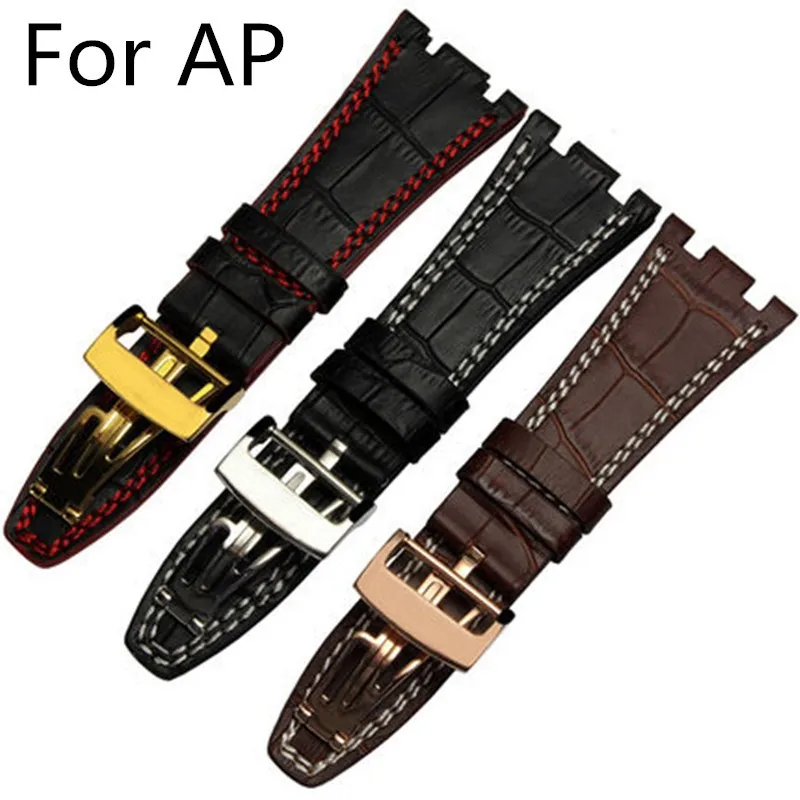 | [해외]새로운 도착 28 미리메터 ap 시계 줄, 3 스타일, 블랙/레드/브라운 정품 가죽 시계 스트랩 로고 |