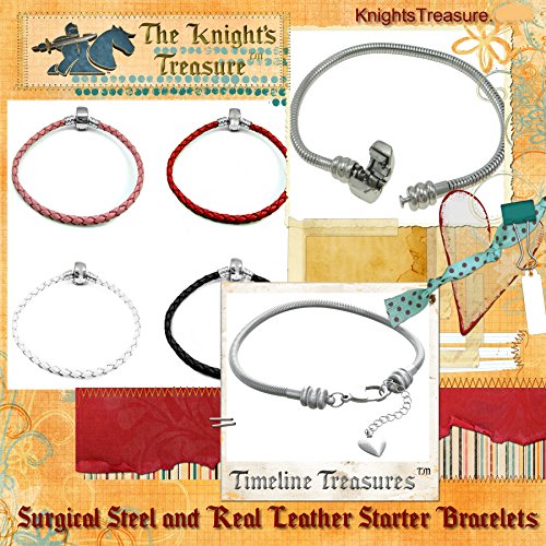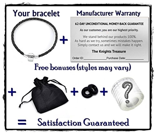 - Feature : INCLUDES BONUS spacer, 2 black silicone stopper o rings, gift bag, and manufacturer warranty card with every order, suitable for immediate gift giving, making this A Real Value. PACKAGED FOR MEN, but suitable for women, too! Master chain looks great with sports, Halloween, boys, gothic, or Father's Day charms. / HIGH QUALITY 316 surgical grade stainless steel resists corrosion and wear, is hypo-allergenic, and nickel, lead & cadmium-free. Beautiful platinum patina is the natural color of the stainless steel clasp and will never wear off, tarnish, or turn colors. Does not require regular polishing like 925 sterling silver. / INDIVIDUALLY HANDMADE of bolo knit braided genuine leather cord only and therefore may differ slightly in color. It is recommended to protect these natural leather strips from moisture. Snap clasp can be easily opened and put on by yourself and requires no special tools: simply wrap under the wrist and snap closed. / COMPATIBLE fit with Add a Bead bracelets and necklaces brands like Trollbeads Chamilia Biagi Caprice Hallmark Connections Oriana Lovelinks by Aagard Reflections Individuality Storywheel Novobeads Storyvines DaVinci Soufeel Kays Charmed Memories Ohm SimStars Brighton Zable and Pandora. / 62-DAY UNCONDITIONAL original manufacturer money-back guarantee from The Knights Treasure LLC. Carefully hand inspected to insure quality. Will fit all spacers, beads and charms with a core size of 3.5mm and up.