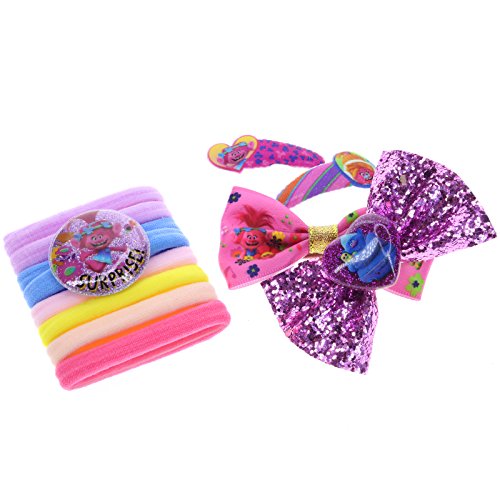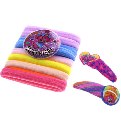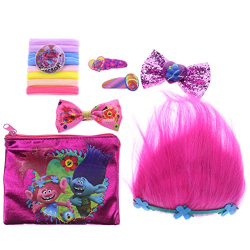 - FABULOUS HAIR CARE SET INCLUDES: Troll hair tiara, 2 hair bows, 8 hair ties, 2 bobby pins and a zippered bag.