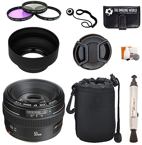 Canon EF 50mm f/1.4 USM Standard & Medium Telephoto Lens for Canon SLR Cameras + Pouch + Filter Kit + Lens Cleaner + Digital Camera Lens Accessories Bundle
