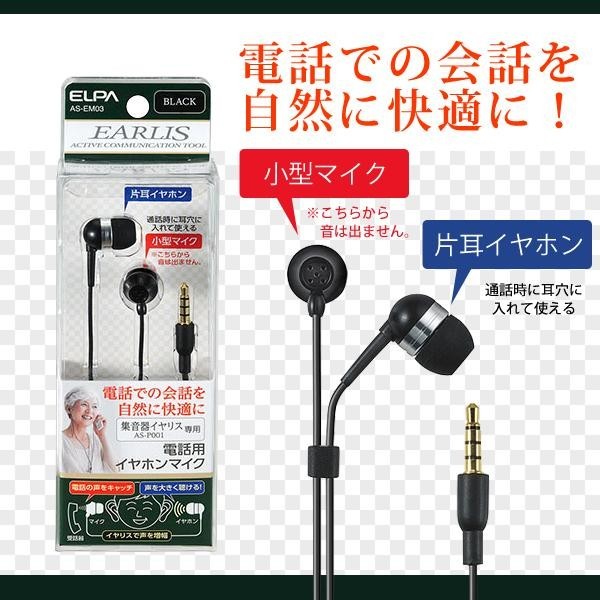 | 本品は集音器イヤリス(AS-P001)専用の電話用イヤホンマイクです。集音器イヤリスを使用しながら自然な持ち方で電話ができます。イヤホンとマイクが分離しているのでハウリング(ピーピー音)の心配がありません。 |