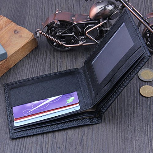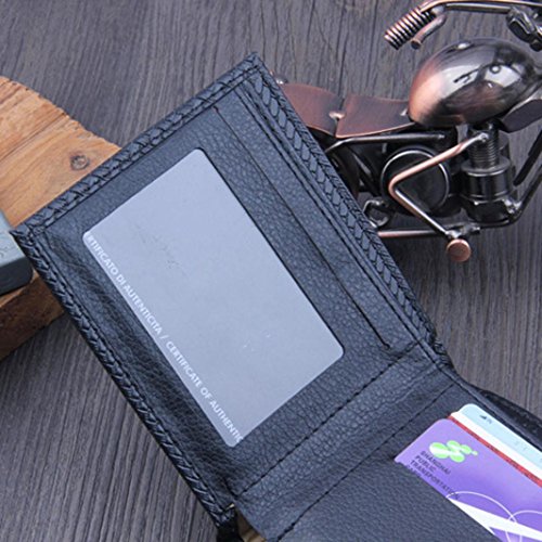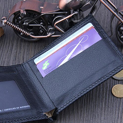 -. Feature : Gender: men. / Material: PU leather, Size:11.5*9.9*1.5cm. / Features: fashion, simple, novel style, texture soft, beautiful money clip.Slim Bi-Fold flip wallet, easy to carry around. / Inside Detail: Credit card inserts, window ID. / Very Stylish and Super good quality.