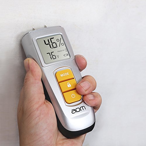 Moisture Damp Meter Detector, aom Digital Wood Building Moisture Tester for Walls Wood Firewood Logs Lime Plaster Concrete Brick