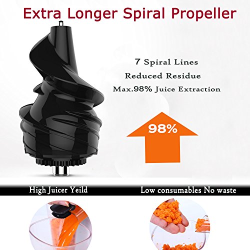 The slow juicer parts can be all disassembled and easily to assemble with no extra tools needed,cleaning brush included.Easy to clean, reduce your household work.The juicer provided with double safety systems, and will not work until all parts are correctly installed.Quality Warranty for 1 Year, ETL qualified