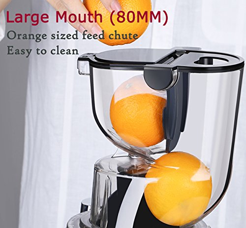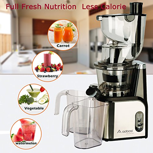 Benefits of Aobosi 80MM Slow Wide Chute Masticating Juicer extractor ,200Watts,120V,60Hz,Silver: * Wide Chute Slow-Speed and User-friendly Design
