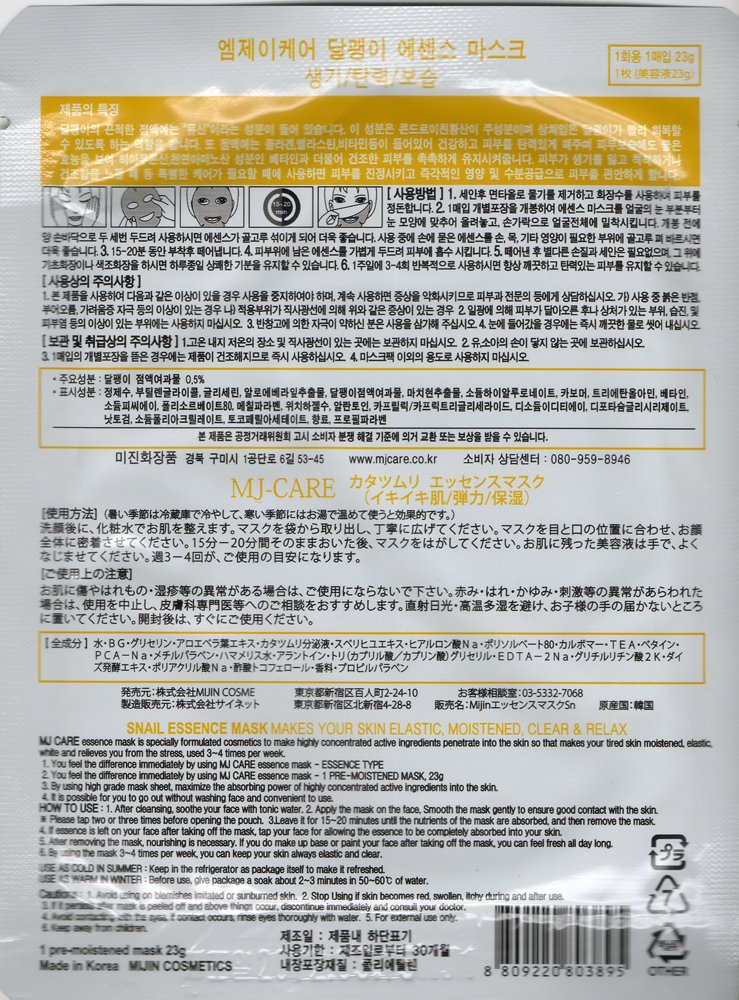 Natural Beauty Snail Essence Full Face Mask 10 Pcs