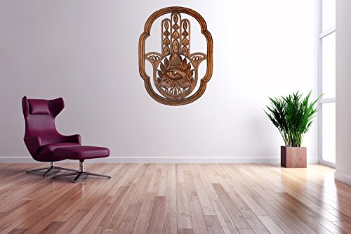 Hamsa Fatima Wood Rustic Hand Carved Large Wall Mounted Hanging Wooden Texture Art Sculpture Accents Textured Decorataive Boho Sign Home Decor