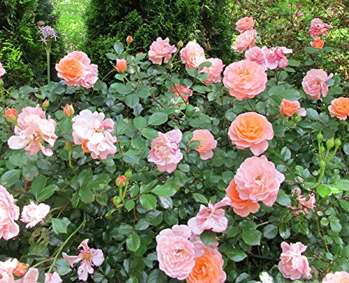 Double apricot colored flowers begin blooming in spring and display a season-long show of color. Low maintenance, vigorous and cold hardy