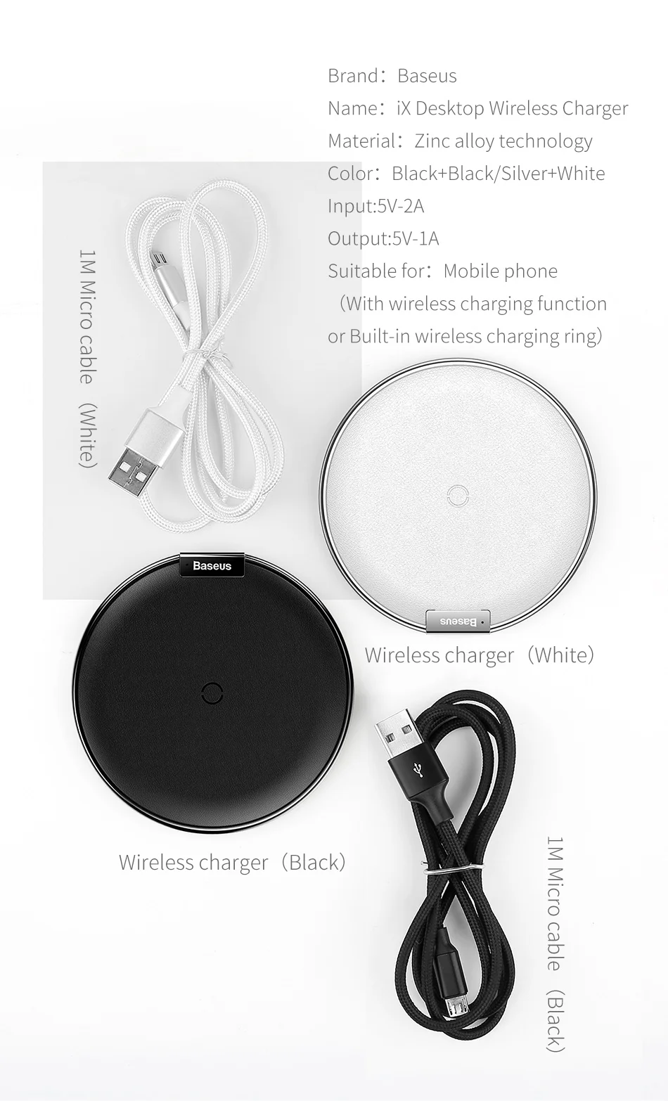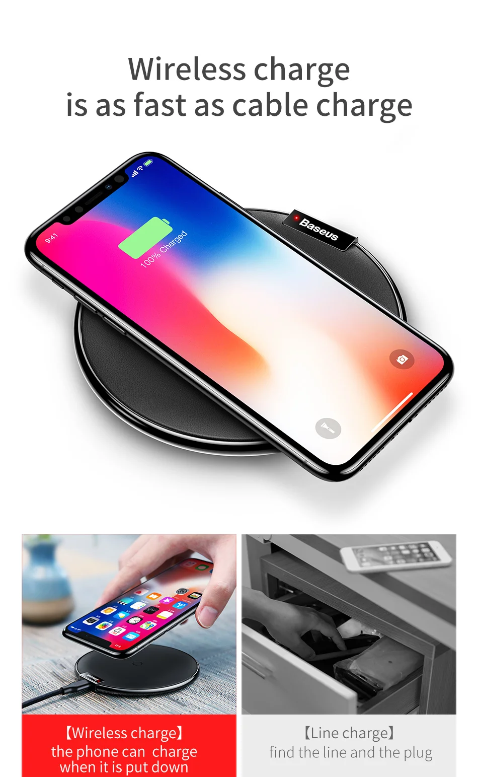 Baseus Wireless Charger QI Charging Pad For iPhoneX 8 Samsung Note8 S8 S7 S6 Edge Desktop Charger Fast Wireless Charging Charger