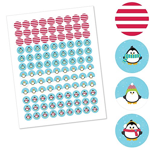 Holly Jolly Penguin - Holiday & Christmas Round Candy Sticker Favors – Labels Fit Hershey’s Kisses (1 sheet of 108)