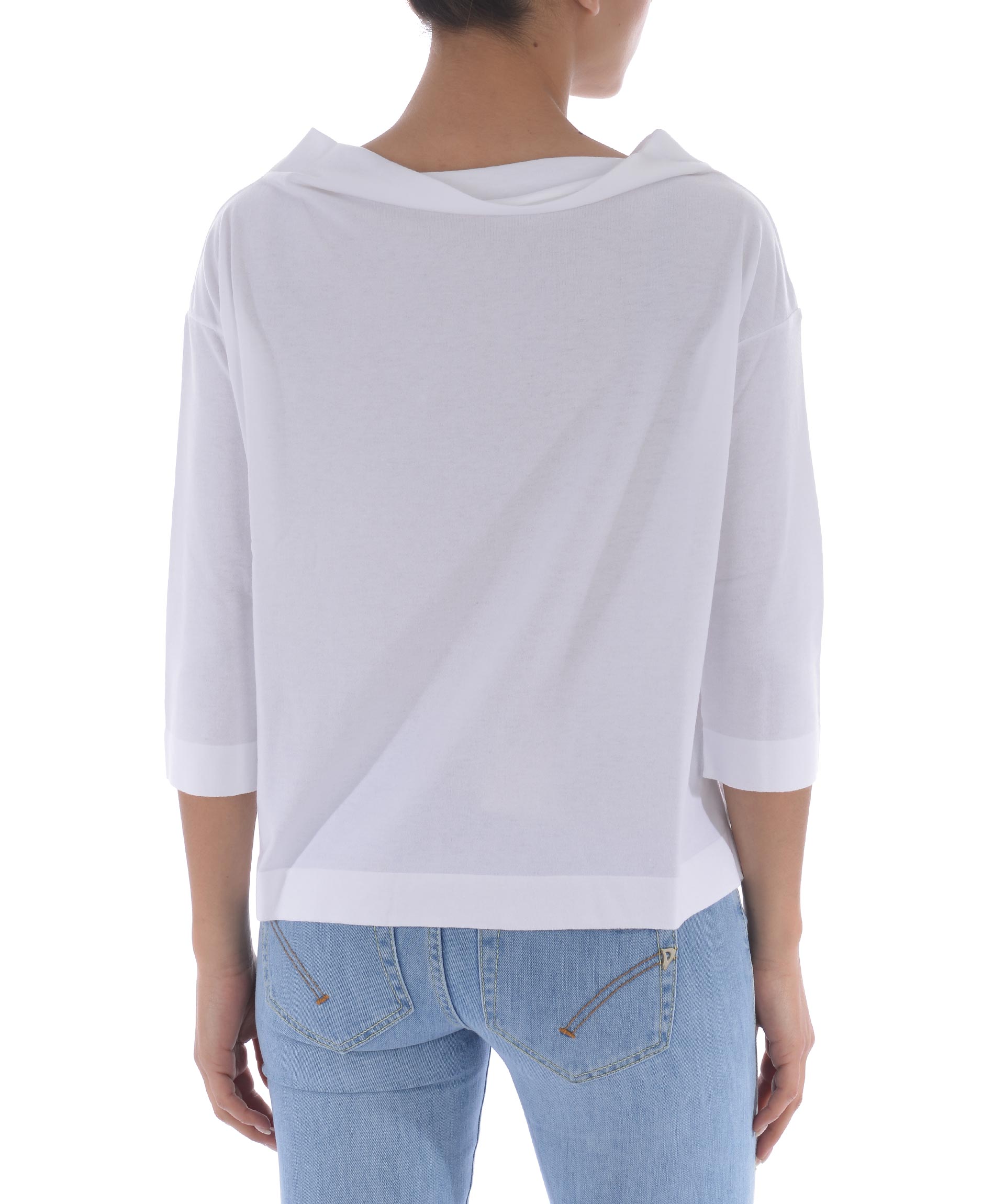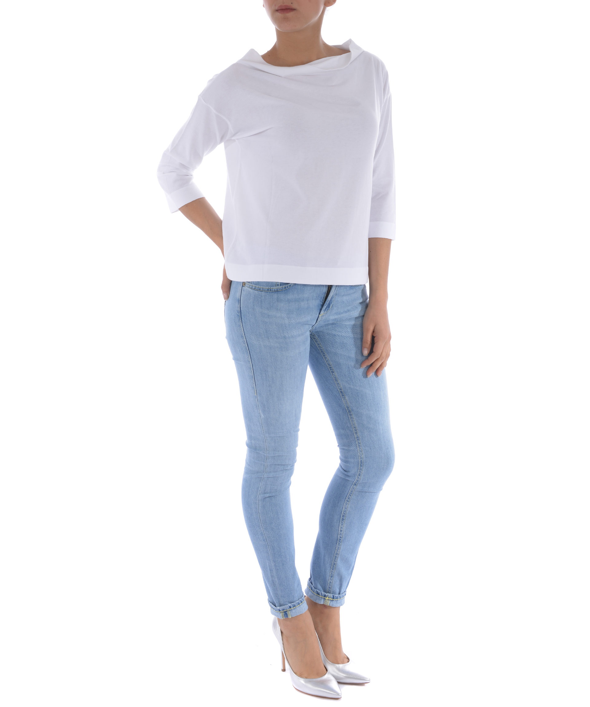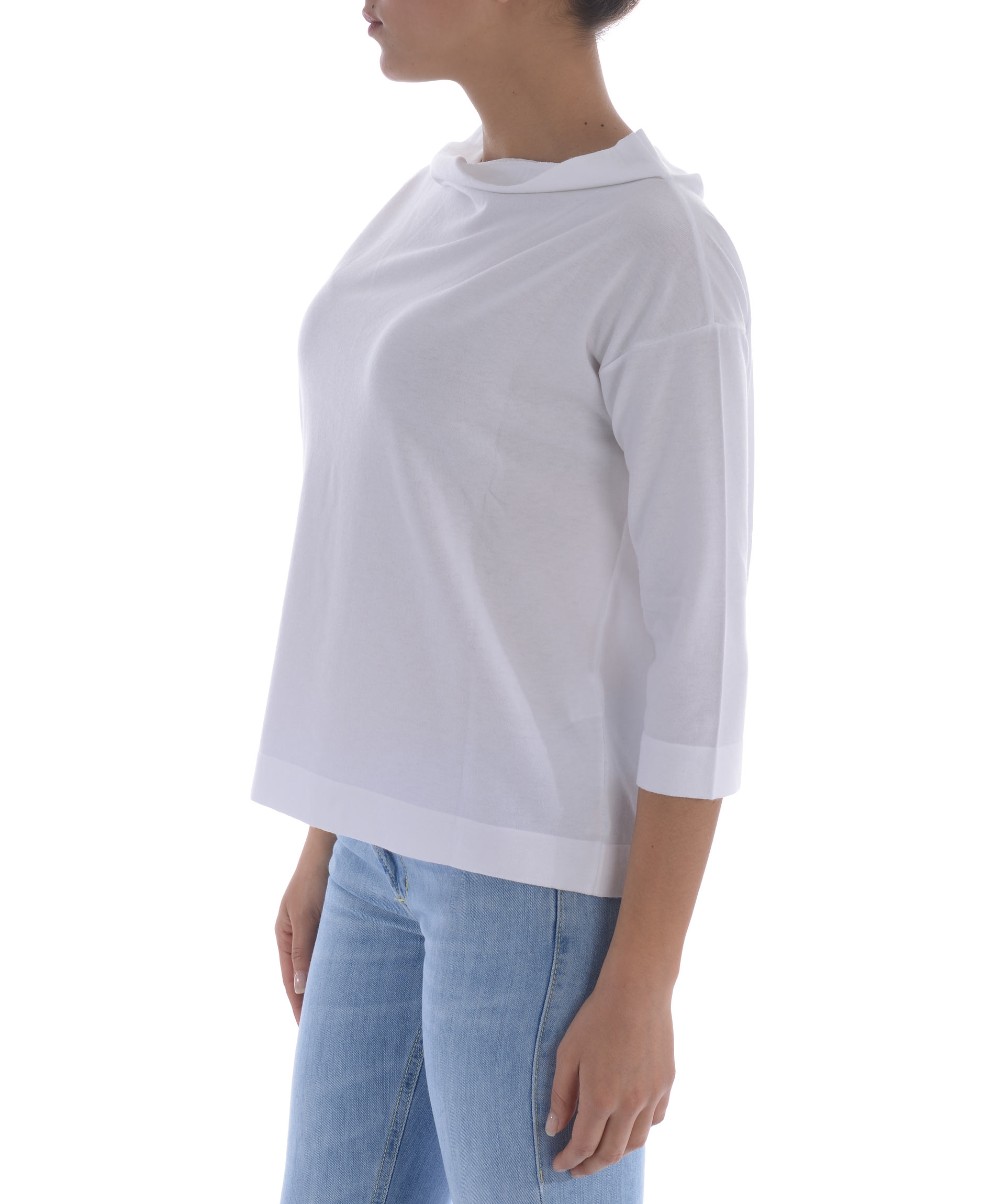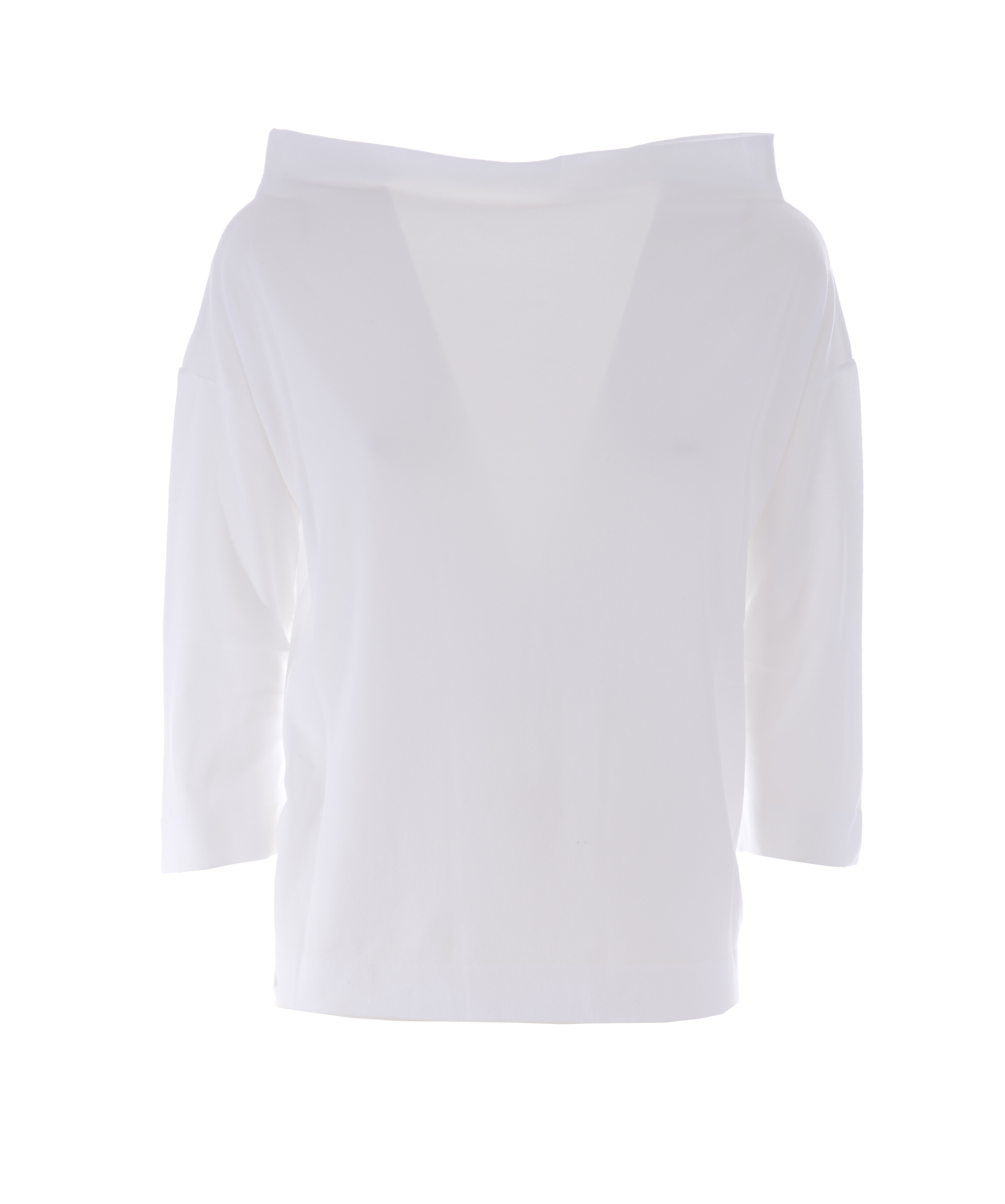 Maglia Base Milano in jersey di viscosa Bianco. Scollo ad anello. Manica 3/4. Misura in foto 42 82% viscosa, 18% poliestere