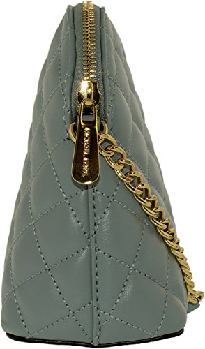 -. Feature : Soft quilted leather with gold-tone hardware / One inside zip pocket / One inside open pocket / Measures 9"W X 6.5"H X 3.5"D / Top Zip Closure with 100% Polyester Lining