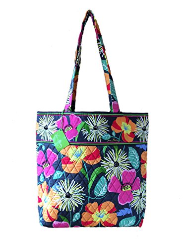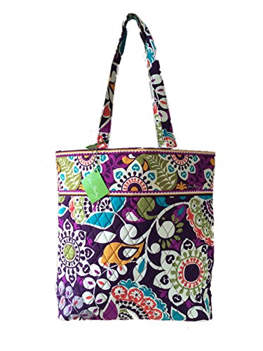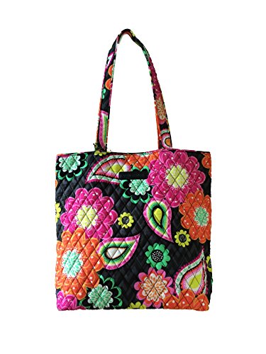 Vera's durable and spacious Tote is made of soft quilted fabric with a removable sturdy fabric covered bottom insert. The open top features a magnetic closure and the interior features 3 open slip pockets. This series has been updated with coordinating solid fabric interiors. The dual straps have a very comfortable drop of about 10.5 inches. Vera's Tote is versatile and makes for a great, every day tote - whether for school, work, the beach, or the gym. It makes a great carry-on bag for travel, or even a beach bag! It is lightweight, and easily maintained. Just remove the sturdy fabric covered insert and it can be placed in the wash. It measures 13 inches long x 13 inches high x 4 inches wide. Machine wash cold, gentle cycle, only non-chlorine bleach as needed, line dry.Feature