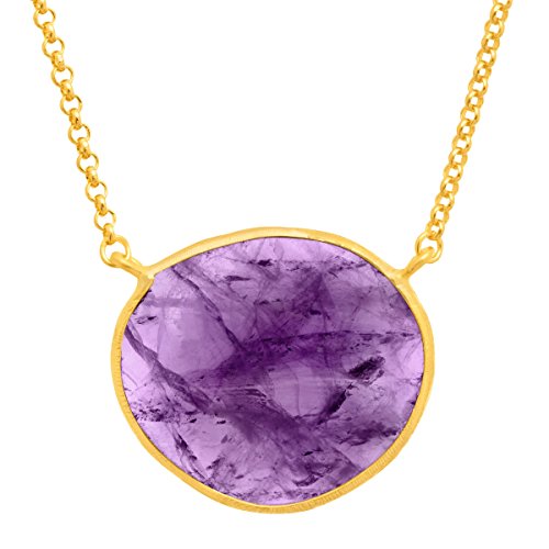 For the woman with a sense of style that is all her own, this Piara necklace is the perfect fit. An organically-shaped 13 ct natural amethyst sits in 18K gold over sterling on an 18 inch rolo chain. Piece measures 3/4 by 1 inches.Feature