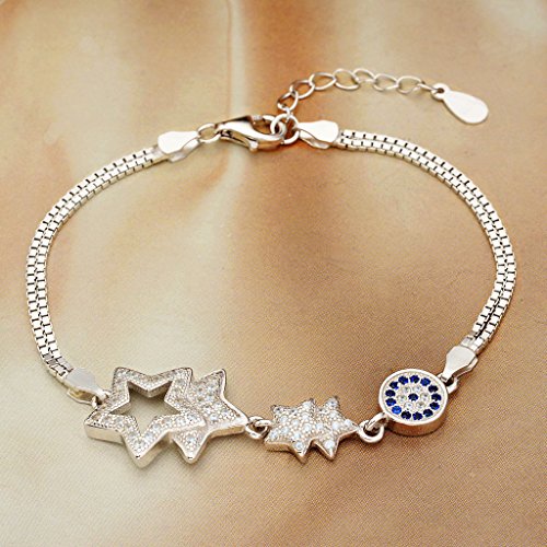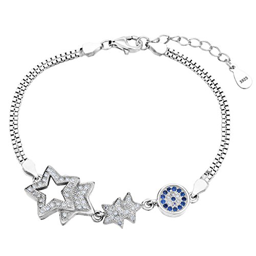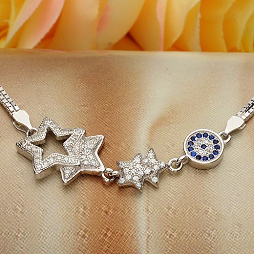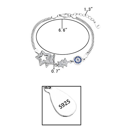 -. Title : EleQueen 925 Sterling Silver CZ Double Strand 4 Star Evil Eye Bridal Bracelet Chain Rhodium Plated