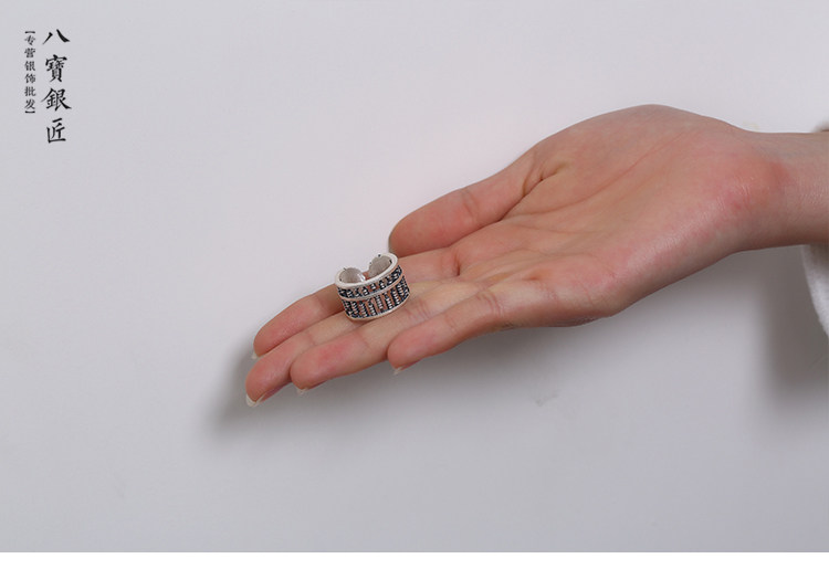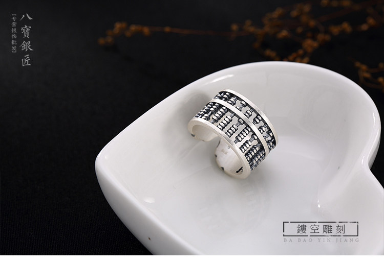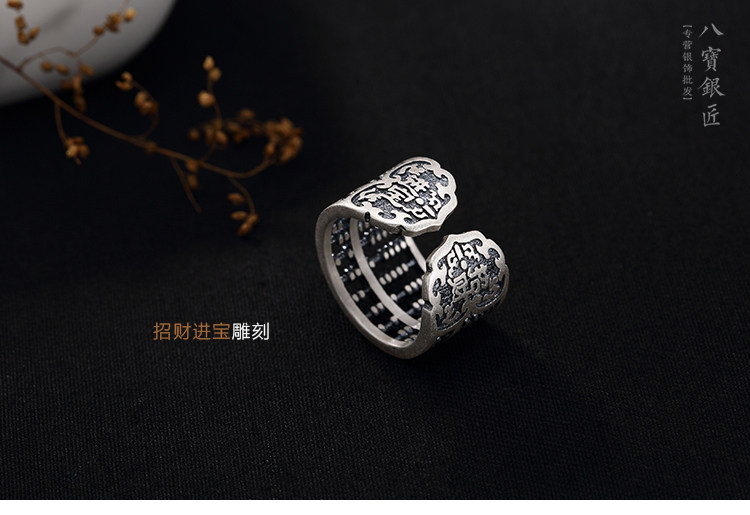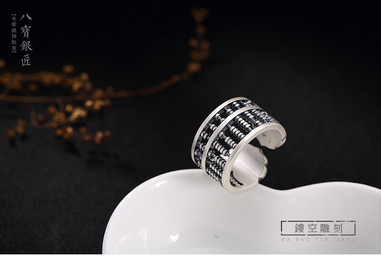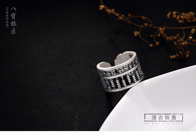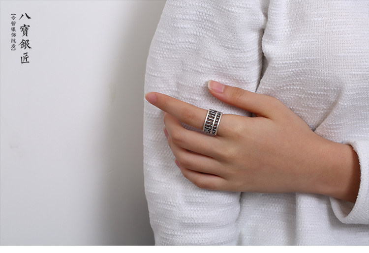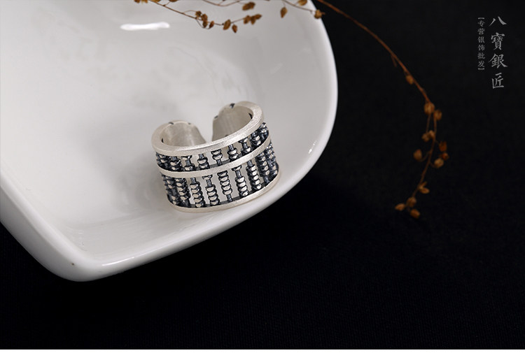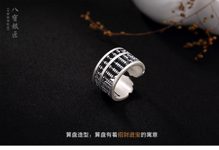 990足银算盘招财进宝戒指韩版复古哑光个性男女情侣指环